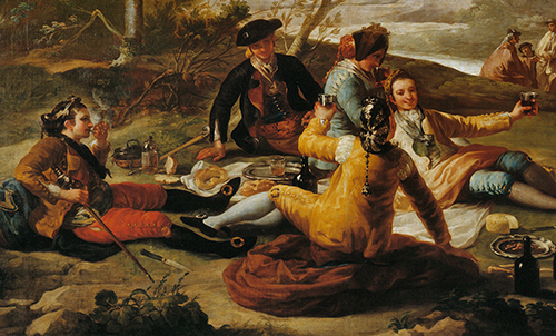 Abre o artigo a imagem de um pormenor da pintura de Goya (1746-1828), A merenda à beira do Manzanares.