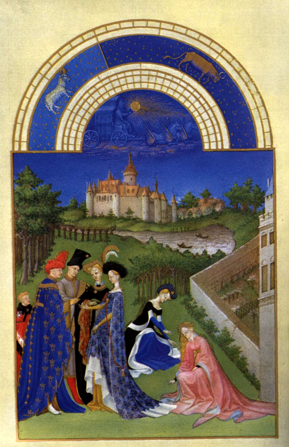 Abre o artigo a imagem de um detalhe da iluminura para o mês de Fevereiro do manuscrito iluminado Les Tres Riches Heures du Duc du Berry pelos irmãos Limbourg.